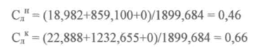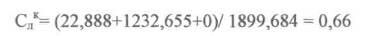 Ккл = 22,888 / (22,888+1232,655+801,557)- 22,888/2057,1=0,011