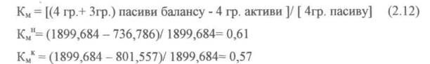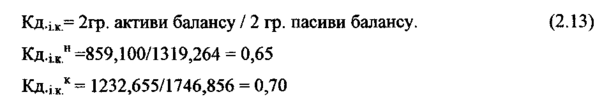 Кдз = 2 гр. активи балансу / (1 гр. + 2гр. + 3 гр.) активу балансу (2.15)