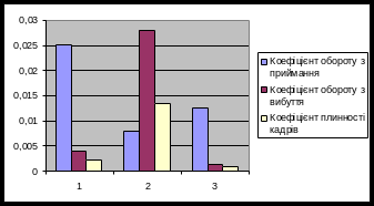 | Коефіцієнт обороту з приймання персоналу | 0,0252 | 0,0079 | 0,0126 |