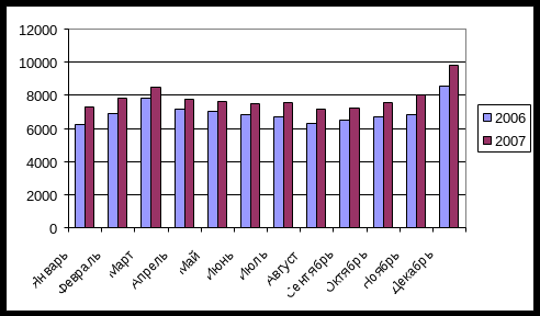 Сравнение помесячного товарооборота ООО «Евросеть-Санкт-Петербург» за 2006-2007 год представлены в таблице 8 и на рисунке 3.