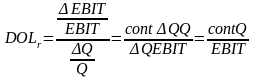 отношение темпа изменения прибыли (до вычета процентов и налогов) к темпу изменения объема реализации в натуральных единицах (DOLr).