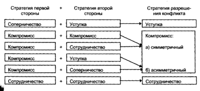 Сочетание стратегий определяет каким способом разрешится противоречие, лежащее в основе конфликта (рис. 1.3).