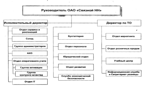 Для анализа конфликтов возникающих в ОАО «Связной НН» необходимо отметить особенность построения структуры управления компании.