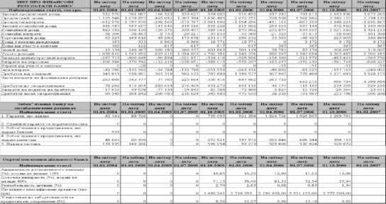Таблиця А.1. Фінансові характеристики АКБ ”Приватбанк" за 2003 - 2006 роки