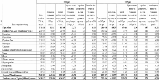 Порівняльні характеристики витрат на утримання персоналу в АКБ “Приватбанк" та в банках першої групи рейтингу комерційних банків України і загалом в банківській системі України за 2005 - 2006 роки
