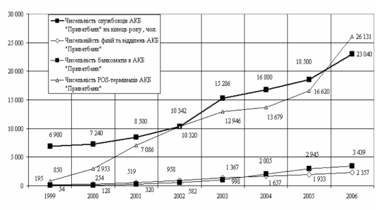 Рис.2.1 Динаміка росту чисельності персоналу та зростання інфраструктурних елементів обслуговування клієнтів.