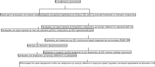 Рис. 2. Класифікація клієнтів за категоріями звернень до центру зайнятості