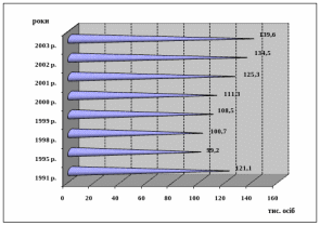 Рис. Середньорічна кількість працюючих на малих підприємствах за 1991-2003 роки