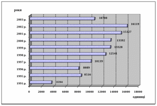 Рис. 2.2 Кількість малих підприємств за 1991 – 2003 роки