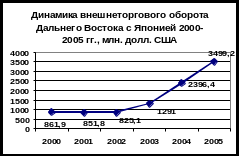Рисунок 2.3 – Динамика внешнеторгового оборота Дальнего Востока с Японией 2000-2005 гг., млн. долл. США
