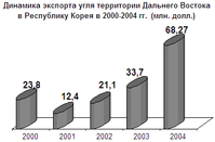 Уголь. В 2004 году Дальний Восток экспортировал в Республику Корея уголь на сумму 68,27 млн. долл., превысив показатели предыдущего года в 2 раза (рисунок 3.2).