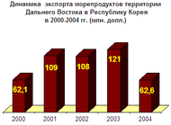 Рисунок 2.4 – Динамика экспорта морепродуктов Дальнего Востока в Республику Корея в 2000-2004 гг., млн. долл. США