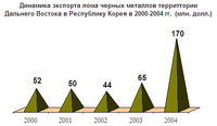 Рисунок 3.1 – Динамика экспорта черных металлов Дальнего Востока в Республику Корея в 2000-2004 гг., млн. долл. США