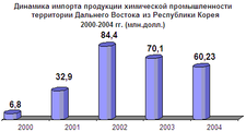 Рисунок 4.1 – Динамика экспорта продукции химической промышленности Дальнего Востока из Республики Корея в 2000-2004 гг., млн. долл. США