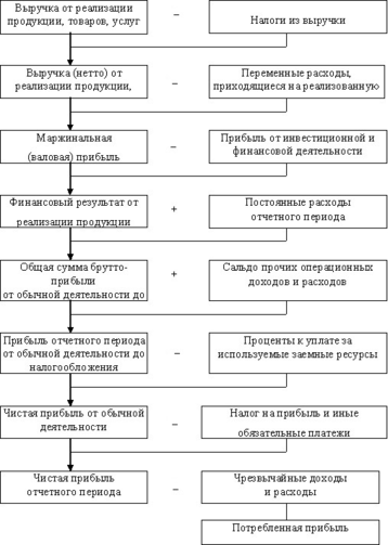 Таким образом, конечный финансовый результат деятельности предприятия выражается так называемой бухгалтерской прибылью (убытком), которая складывается из финансового результата от реализации товаров, продукции (работ, услуг); доходов от участия в других организациях; процентов к получению за минусом их к уплате; операционных доходов и расходов; внереализационных доходов и расходов; чрезвычайных доходов и расходов за вычетом налога на прибыль.