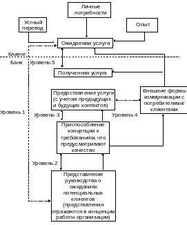 Первый уровень модели составляет разницу между ожиданиями клиентов и представлением об этих ожиданиях менеджеров банковского учреждения. Главными факторами, что влияют на этот уровень, являются: