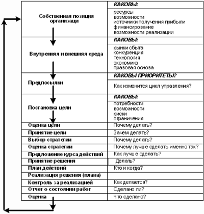 Весь процесс формирования стратегии развития предприятия заключается в циклическом выполнении ряда последовательных этапов работ по анализу, оценке, планированию (прогнозированию) целей и результатов деятельности на соответствующий период. Причем исходными при реализации этого алгоритма формирования стратегии являются такие элементы, как собственная оценка предприятием своих позиций в бизнесе и установленные на основе этой оценки цели производственно-хозяйственной деятельности. С этой точки зрения определяющим в общем процессе управления предприятием является управление целями в виде обоснованной постановки и последовательного достижения целей на каждом из их иерархических уровней.