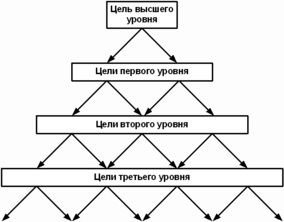 Таким образом, самостоятельность, и при этом определенная соподчиненность целей, их иерархия предусматривают последовательность приоритетов, когда цели более высокого уровня являются главенствующими, определяющими для целей низлежащих уровней. Именно тогда в агрегированном виде схема построения всей системы целей принимает вид "иерархии целей", представленный на рис. 3.2.