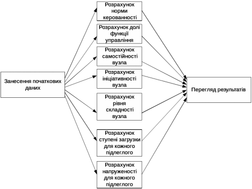 Для автоматизації процесу оцінки ефективності організаційного управління необхідно щодня слідкувати за керівниками та їхніми підлеглими на протязі певного проміжку часу, збираючи всю необхідну інформацію. При аналізі інформації вхідні дані можна коректувати, для того, щоб визначити найкращу структуру організації.