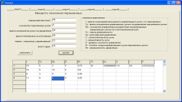сумарні витрати часу, пов'язані з управлінням (сума тимчасових витрат на ПУВ), на функціонування (сума часів функціонування, ПО, ПТ), втрати часу на ОП, ОО, загальний час роботи вузла;