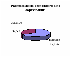 На рисунке 2 представлена диаграмма распределения выборки по образованию (высшее – среднее).