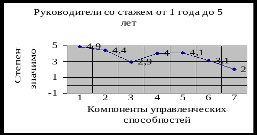 На рисунке 8 представлен профиль управленческих способностей руководителей со стажем работы от 1 года до 5 лет.