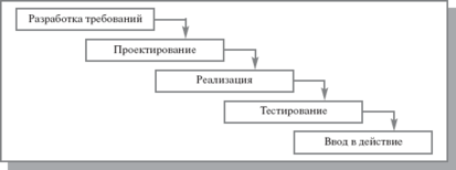 Каскадная модель. Предусматривает последовательное выполнение всех этапов проекта в строго фиксированном порядке. Переход на следующий этап означает полное завершение работ на предыдущем этапе (рисунок 1).
