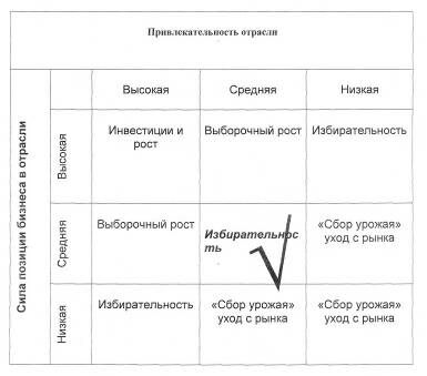 Учитывая привлекательность данной отрасли, а также относительно неплохих позиций в сегменте рынка для предприятия необходима II и III типовая стратегия – это сохранение позиций, конкурентоспособности, избирательное инвестирование для выпуска определенного круга качественных товаров.