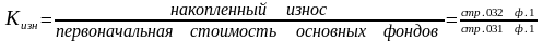 коэффициент износа основных фондов, характеризует долю стоимости основных средств, списанную на затраты в предшествующих периодах, в первоначальной стоимости