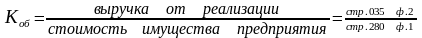 коэффициент оборачиваемости активов; при помощи данного коэффициента оценивается эффективность использования предприятием всех имеющихся ресурсов вне зависимости от источников их привлечения.