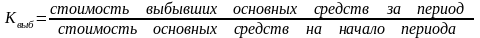 коэффициент выбытия показывает, какая часть основных средств, с которыми предприятие начало деятельность в отчетном периоде, выбыло по различным причинам