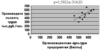 Рис. 3.1. Зависимость между производительностью труда и организационной культурой предприятия