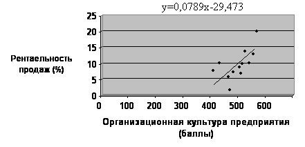 Рис.3.3. Зависимость между рентабельностью продаж и организационной культурой предприятия
