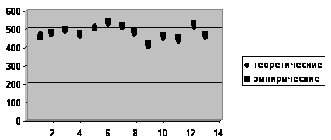 Рис.1.14. Теоретические и эмпирические значения показателя организационной культуры