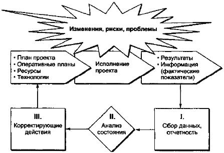 Обобщенная схема процесса контроля исполнения проекта показана на рис.10.
