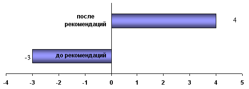 До внедрения предлагаемых рекомендаций эффективность управления персоналом можно оценить отрицательно с оценкой "минус три балла". В случае выполнения предложенных рекомендаций - положительно с оценкой "плюс четыре балла".