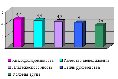 Следующими по степени влияния на эффективность управления персоналом на предприятии являются такие факторы, как стиль руководства (значимость данного фактора - 4) и платежеспособность (значимость данного фактора 4,2).