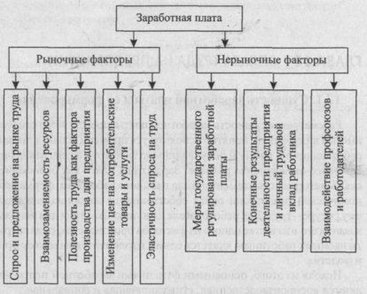 В условиях рыночной экономики на величину заработной платы воздействует ряд рыночных и нерыночных факторов, в результате чего складывается определенный уровень оплаты труда (рис.1.1).