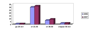 Рисунок 3 - Возрастная структура трудового персонала ООО «Одиссей-шип-сервис», 2006-2007 гг.