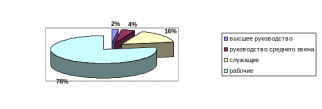 Таким образом, основной контингент персонала составляют рабочие (мастера участка ППО/АСС, швейный цех), далее идут служащие - 16%. Руководство составляет наименьшую долю работников.