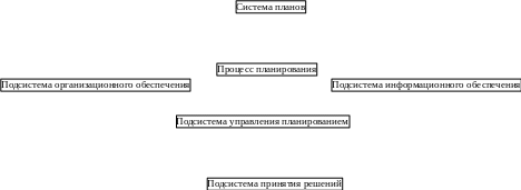 Систематически систему стратегического планирования можно представить следующим образом. Она полностью включает систему планов, процесс планирования, подсистему управления планированием и частично – три других элемента: подсистемы организационного и информационного обеспечения, принятие Решений.