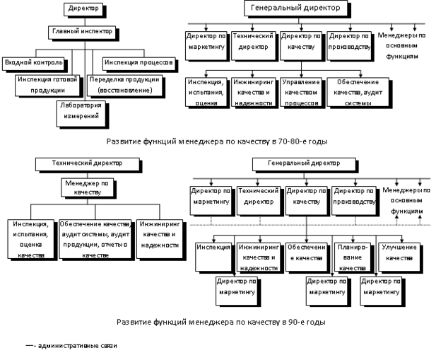 Рис. 1.2 Развитие организационных схем управления качеством и основных функций менеджера по качеству в ХХ веке2