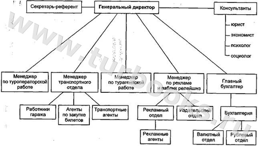 Управление турфирмой во многом аналогично управлению любым другим предприятием, однако имеет свои особенности. Они связаны с многовариантностью туристской деятельности. Неопределенностью конечного результата, часто зависящего от партнеров, быстрой изменчивостью факторов внешней среды, необходимостью работы с потребителями услуг не только в момент продажи, но и в процессе их реализации.