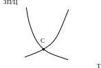 Цена рабочей силы гибко реагирует на потребности рынка, увеличиваясь или уменьшаясь в зависимости от спроса и предложения, а безработица невозможна до тех пор, пока на рынке существует равновесие. Равновесная ставка заработной платы и соответственно равновесный уровень занятости для данного вида труда определяются на пересечении кривых спроса и предложения на труд (точка С).