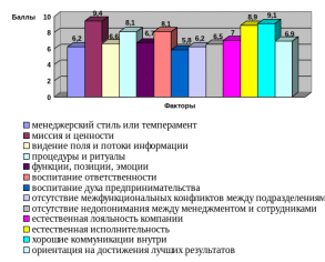 Следом идут факторы «хорошие коммуникации внутри» – 9,1 балл и «естественная исполнительность» – 8,9 балла. Также к наиболее значимым факторам были отнесены «процедуры и ритуалы» и «воспитание ответственности».