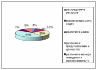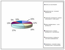 Рис. 9. Структура основных причин межгрупповых и межличностных конфликтов в ДОП-4 «Комсомольская дирекция по обслуживанию пассажиров»