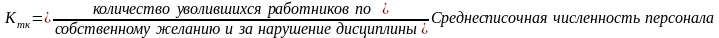 - коэффициент текучести кадров (Кт.к.):