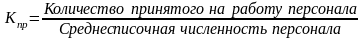 - коэффициент оборота по приему рабочих (Кпр):