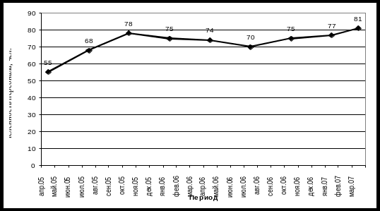 Таким образом, графически можно показать уровень текучести кадров в ЗАО ТД «Firma» в разные периоды.