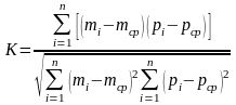 где: mi, pi – значения соответствующих параметров (между которыми устанавливается теснота связи) по i-му измерению;